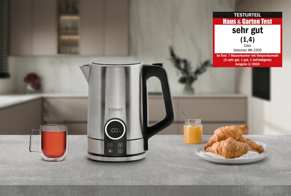 Mit einem elektrischen Wasserkocher lässt sich Wasser in kurzer Zeit erhitzen – und das schneller, einfacher und sparsamer als mit einem herkömmlichen Herd. Die neuen Wasserkocher Classico WK 2200 und Selection WK 2200 von CASO Design sind ideal, um Wasser schnell und effizient aufzukochen. Beide Modelle wurden jetzt in unabhängigen Testmagazinen als „sehr gut“ ausgezeichnet.