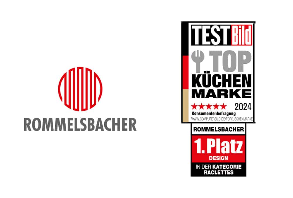 Rommelsbacher darf sich auch für 2024 über die Auszeichnung als Top Küchenmarke freuen. Die repräsentative Befragung von Konsumenten durch TESTBild bestätigte bereits zum fünften Mal die herausragende Position des süddeutschen Unternehmens gegenüber den Wettbewerbern. Besonders hervorzuheben ist die erneute Auszeichnung in der Kategorie Raclette, bei der Rommelsbacher nicht nur für Langlebigkeit, sondern auch für erstklassiges Design den 1. Platz sichern konnte. Diese doppelte Anerkennung unterstreicht die kontinuierliche Leidenschaft des Unternehmens zur Entwicklung von Produkten höchster Qualität und Ästhetik.